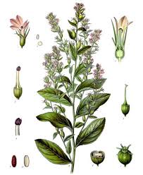 The Indian tobacco is a hairy annual, with an erect branched stem from one to three feet high. The lower leaves are oval, from one to two and a half inches long with toothed margins and short stalks. The upper leaves have no stalks, and gradually diminish into leaf-like bracts. Its numerous pale blue flowers are small, two-lipped, and rather inconspicuous in the axils of the upper leaves. The seed-pods are inflated, nearly round, with ten prominent ribs, and contain numerous brown seeds, oblong and reticulated. The plant is in bloom from July to October.The whole plant contains an acrid milky juice, and has an unpleasant burning taste. It is used medicinally. The leaves contain the poisonous narcotic alkaloid lobeline. Lobeline, as well as other constituents found in lobelia, is open to further investigation, but its action is well known. Greenish remarks, "Lobeline has an action closely allied to that of nicotine; it first excites the nerve-cells and then paralyses them." Millspaugh says, "Thanks to much reckless prescribing by many so-called botanic physicians, and to murderous intent, as well as to experimentation and careful provings, the action of this drug is pretty thoroughly known. Lobelia in large doses is a decided narcotic poison, producing effects on animals generally, bearing great similitude to somewhat smaller doses of tobacco, and lobelina in like manner to nicotia."